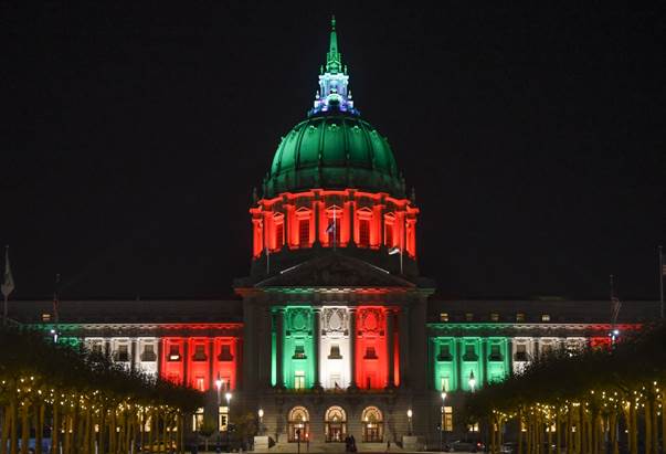 San Francisco, 21 ottobre 2019 – Si è appena conclusa la visita ufficiale del Presidente Mattarella nella baia di San Francisco. Era dal 1983 che un Presidente italiano non si recava in California; per l’occasione il City Hall e la Coit Tower sono state illuminate con i colori della bandiera tricolore, rendendo omaggio al nostro paese.