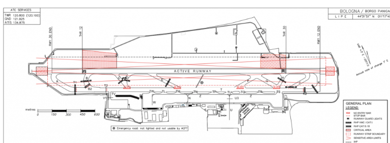Per attività concernenti le stop bars e no entry bars a Bologna da domani a mercoledì tra le 8 e le 19 saranno limitati i movimenti ad uno per volta nel caso vi sia bassa visibilità sotto i 550 metri di RVR.