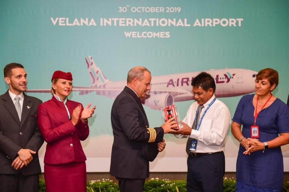 Le foto del water cannon salute all’aeroporto di #Male per l’arrivo del primo volo #AirItaly da #Milano #Malpensa. Se non ci avessero pensato i vigili del fuoco, la natura l’avrebbe fatto lei.