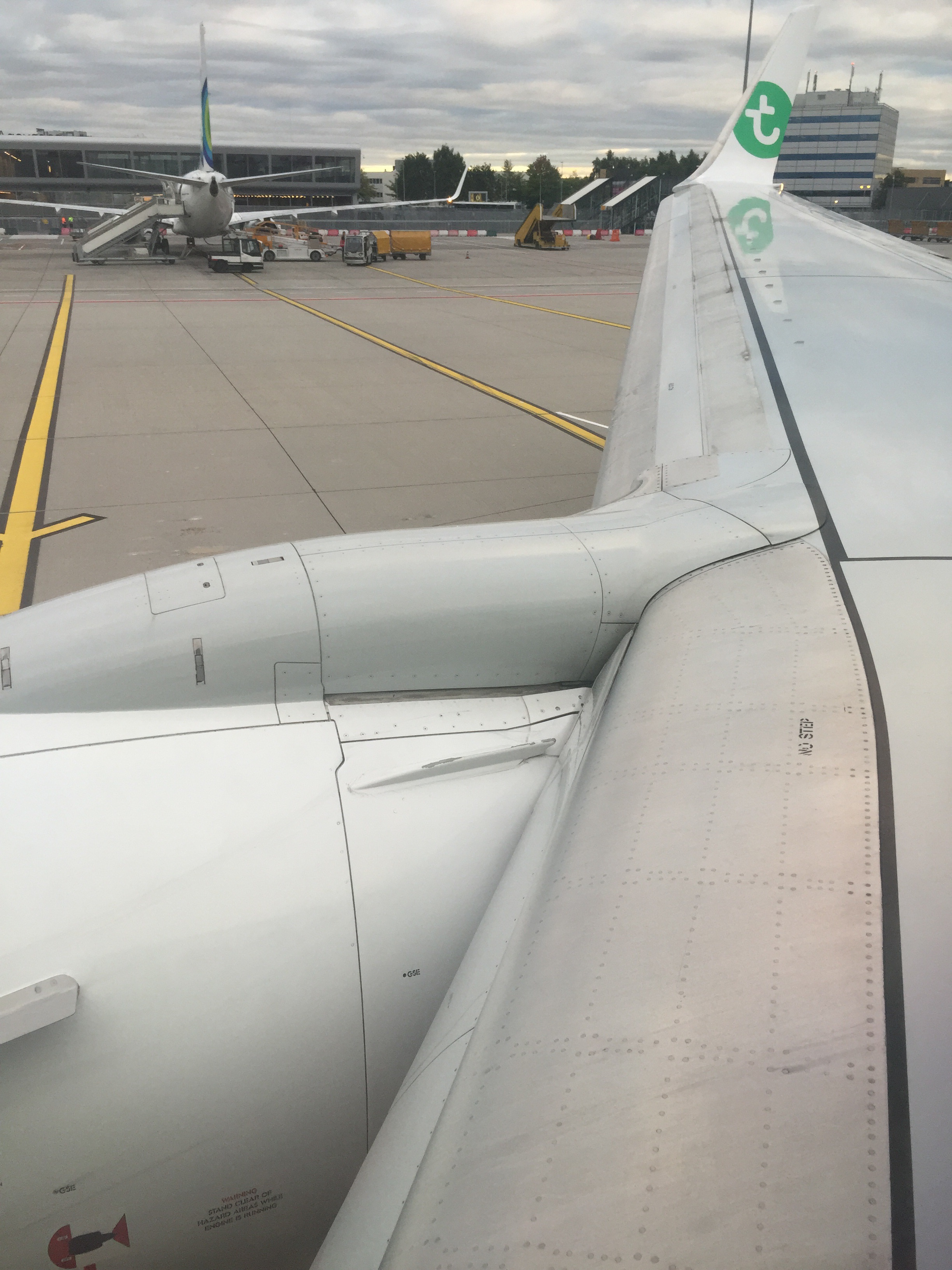 Nella foto il bordo di attacco di un Boeing 737NG, la parte mobile anteriore e’ lo slat