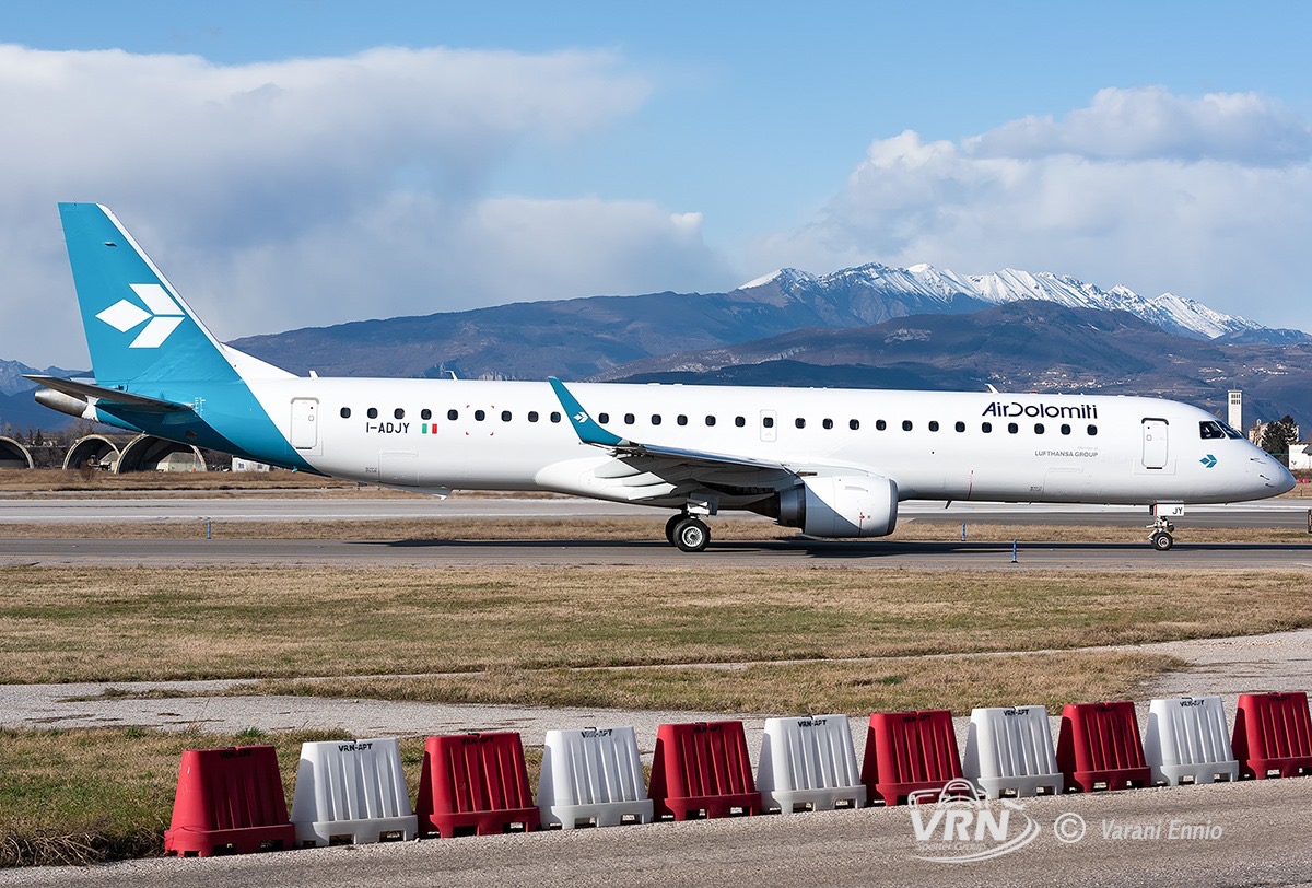 E’ giunto da Bournemouth questo EMB195 I-ADJY Air Dolomiti, in precedenza era D-AEMC. Il velivolo e’ il quindicesimo di questo tipo ora in flotta con il vettore italiano totalmente partecipato da Lufthansa.