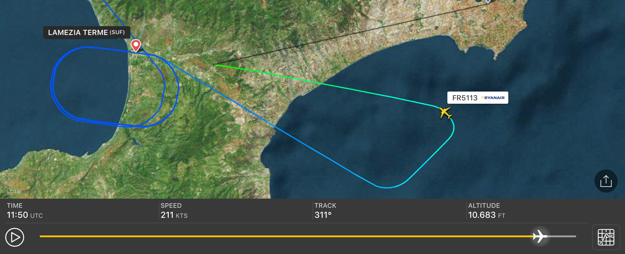 Vento a raffiche per tutta la giornata a Crotone. Il volo da Bergamo FR5113 e’ poi atterrato a Lamezia Terme. Non c’erano le condizioni per atterrare sullo scalo di destinazione. L’intensità era di 25 nodi con raffiche fino a 35, quando l’aereo e’ arrivato sulla verticale dello scalo lametino ha poi orbitato 5 volte per poi dirigersi verso Crotone. Successivamente alla quota di FL106 ha invertito per l’alternato.
