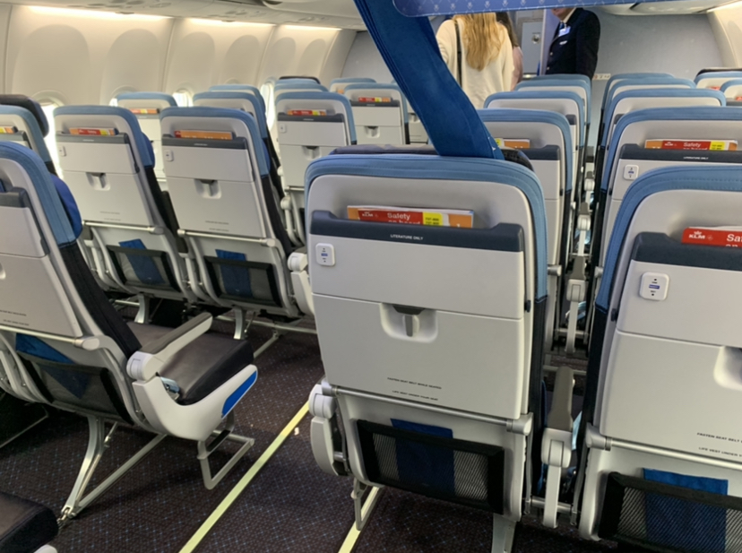 Siamo sull’esemplare con le marche PH-BCL “Red Crested Pochard /Krooneend. La configurazione interna di questo aereo e’ di 180 posti in doppia classe. I passeggeri hanno guadagnato leggermente un po’ di spazio, grazie a questi sedili più slim, rispetto ai precedenti.