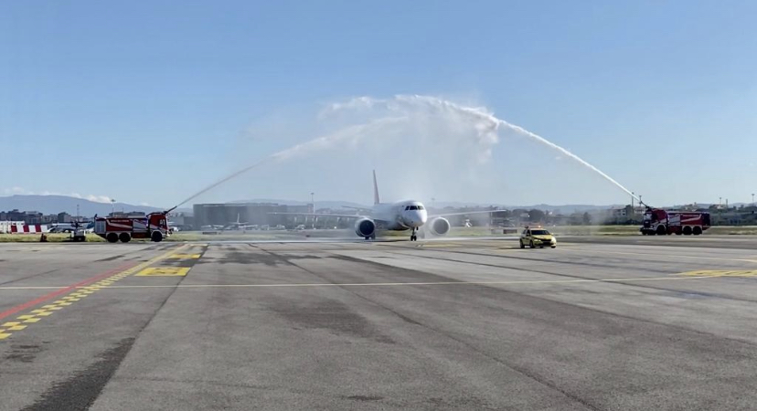 Festeggiato con il tradizionale water cannon, “il battesimo del volo”, l’equipaggio dell’Helvetic Airlines con il nuovo modello di Embraer è stato accolto dal personale di Toscana Aeroporti che ha omaggiato la crew con bottiglie di vino per celebrare un momento particolarmente importante per Helvetic Airways e per la tratta Zurigo-Firenze.