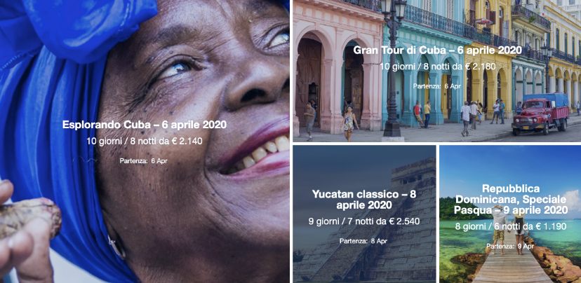 Per chi non vuole perdere occasione di visitare il Messico, ecco il tour Yucatan Classico con partenza 8 Aprile (9gg/7notti a 2.540€ voli inclusi), mentre per chi sogna in viaggio all’insegna del relax sulle lunghe e bianchissime spiagge caraibiche della Repubblica Dominicana da segnare la partenza del 9 Aprile (8gg/6notti a 1.190€ voli inclusi).