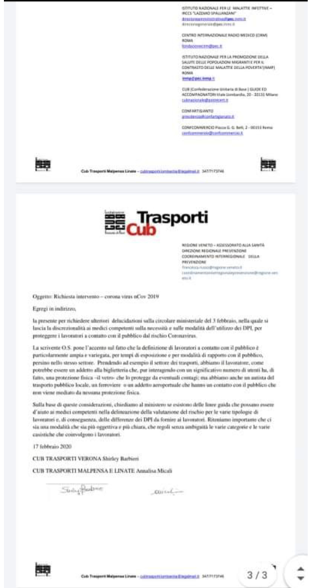 aeroporti Aeroporti e Covid19: le preoccupazioni di CubTrasporti Pubblicato da Italiavola il 26 febbraio 2020 Il Covid19, fa venire alla ribalta anche altri aspetti di sicurezza del lavoro. CubTrasporti in una lettera inviata a molti soggetti istituzionali pone in evidenza il problema di chi lavora in ambito aeroportuale a contatto con il pubblico. Condividi: Fai clic per condividere su Facebook (Si apre in una nuova finestra) Facebook Fai clic qui per condividere su LinkedIn (Si apre in una nuova finestra) LinkedIn Fai clic qui per condividere su Reddit (Si apre in una nuova finestra) Reddit Fai clic qui per condividere su Pinterest (Si apre in una nuova finestra) Pinterest Fai clic qui per condividere su Tumblr (Si apre in una nuova finestra) Tumblr Fai clic per condividere su X (Si apre in una nuova finestra) X Mi piace Caricamento... Correlati