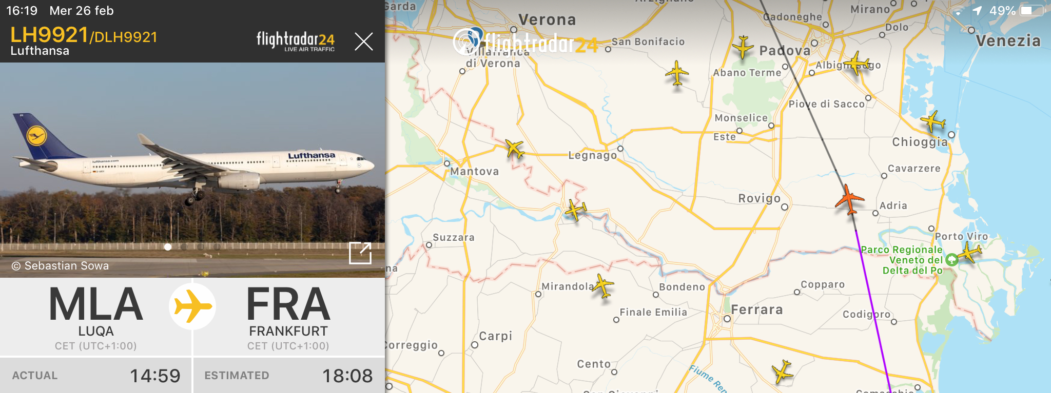 compagnie aeree, rotte Lufthansa : un A330 ritorna a Francoforte dopo il check a Malta Pubblicato da Italiavola il 26 febbraio 2020 Questo Airbus 330-300 sta ritornando in Germania a Francoforte dopo la manutenzione effettuata a Malta. L’aereo sta sorvolando il nord est. Il volo e’ la LH9921. Condividi: Fai clic per condividere su Facebook (Si apre in una nuova finestra) Facebook Fai clic qui per condividere su LinkedIn (Si apre in una nuova finestra) LinkedIn Fai clic qui per condividere su Reddit (Si apre in una nuova finestra) Reddit Fai clic qui per condividere su Pinterest (Si apre in una nuova finestra) Pinterest Fai clic qui per condividere su Tumblr (Si apre in una nuova finestra) Tumblr Fai clic per condividere su X (Si apre in una nuova finestra) X Mi piace Caricamento... Correlati