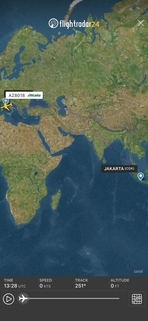 E’ abbastanza insolito l’atterraggio a Jakarta per il Boeing 777-243ER Alitalia EI-DBM decollato nel pomeriggio di ieri da Roma FCO.