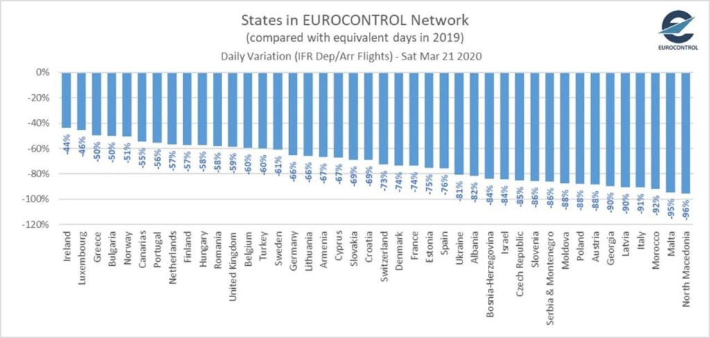 L’Italia e’ al quarto posto in classifica, ben visibile ogni momento su FR24 o Radarbox24. Il risultato è’ – 91%. Degne di nota in progressivo crollo la Spagna al -76%, la Francia al -74%, l’Olanda al -57% con una perdita di più di una decina di punti percentuali nel giro di un paio di giorni.