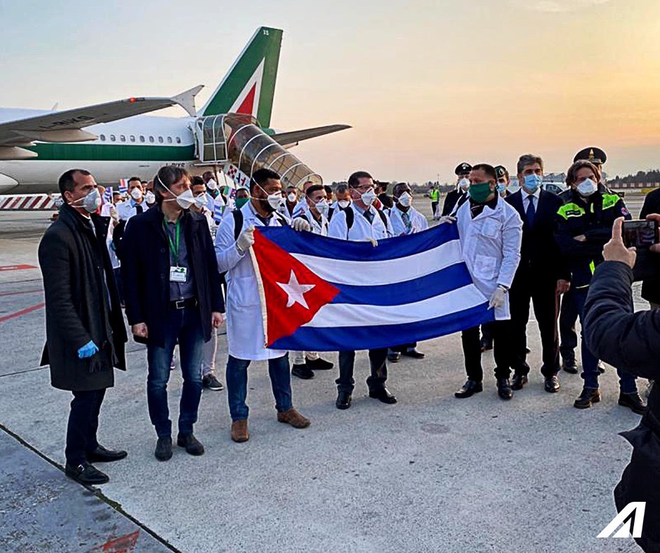 Nella foto di Alitalia, ci sono qui al loro arrivo a Milano Malpensa i medici e gli infermieri cubani giunti per darci una mano contro il Covid-19. A loro va il nostro ringraziamento, come pure per chi ci sta aiutando in questi terribili momenti.