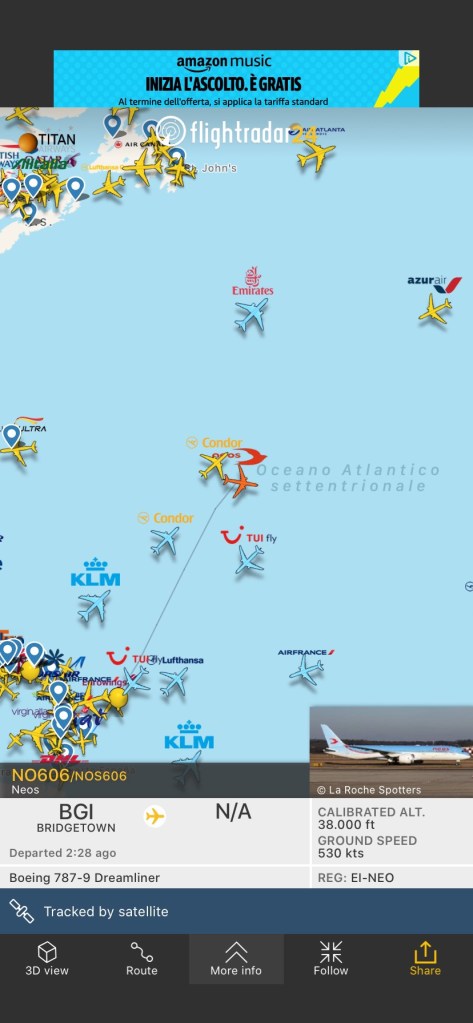 compagnie aeree, rotte, Senza categoria Neos : Bridgetown – Francoforte e poi Milano Malpensa per EI-NEO Pubblicato da Italiavola il 24 marzo 2020 Dopo aver effettuato il riposizionamento da Buenos Aires a Bridgetown, quindi ha operato un volo per Francoforte, ora sta per iniziare l’avvicinamento a Milano Malpensa il B787-9 EI-NEO. Condividi: Fai clic per condividere su Facebook (Si apre in una nuova finestra) Facebook Fai clic qui per condividere su LinkedIn (Si apre in una nuova finestra) LinkedIn Fai clic qui per condividere su Reddit (Si apre in una nuova finestra) Reddit Fai clic qui per condividere su Pinterest (Si apre in una nuova finestra) Pinterest Fai clic qui per condividere su Tumblr (Si apre in una nuova finestra) Tumblr Fai clic per condividere su X (Si apre in una nuova finestra) X Mi piace Caricamento... Correlati