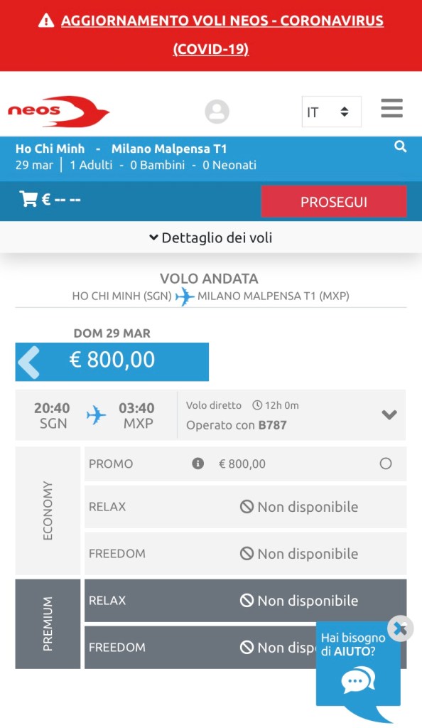 In vendita sul sito Neos i passaggi aerei di sola andata da Manila e Ho Chi Minh City per Milano. Unica partenza oggi alle 17 dalle Filippine e le 20:40 dal Vietnam. 800€ la tariffa richiesta. Informazioni su http://www.neosair.it
