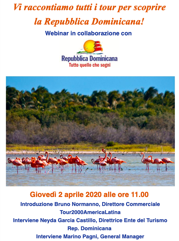Tour2000AmericaLatina, tour operator specializzato, da oltre 25 anni, nell’organizzazione di viaggi in America Latina e che ha da poco lanciato sul mercato italiano tour inediti per vivere la vera anima dominicana, propone con l’Ente del Turismo della Repubblica Dominicana un webinar unico riservato agli Agenti di Viaggio.