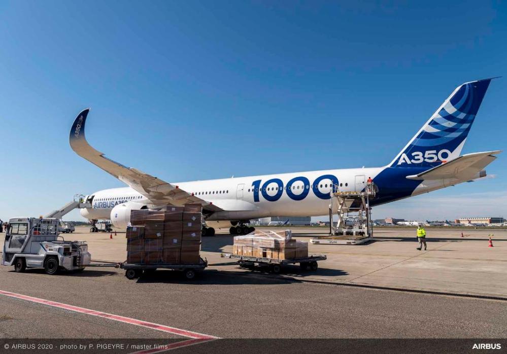 A350-1000. Questa è la terza missione del genere da svolgere tra Europa e Cina. L’aereo è atterrato in Francia domenica 5 aprile con una spedizione di quattro milioni di maschere a bordo.