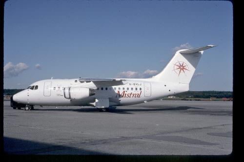Lo utilizzo’ Meridiana per un estate! Era G-BVLJ, un BAe146/100 noleggiato dal costruttore British Aerospace dalla Mistral Air.