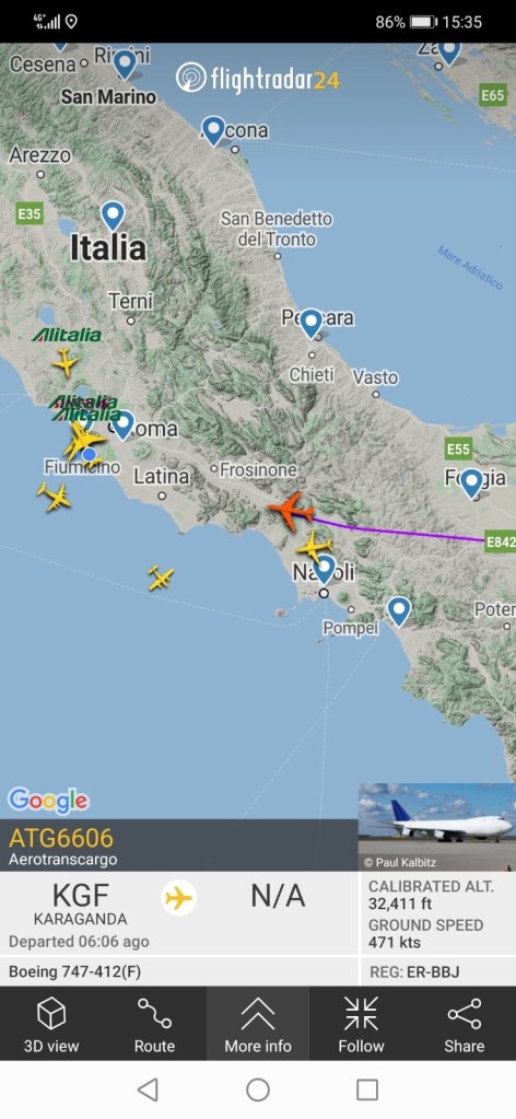 compagnie aeree, rotte Aerotranscargo in arrivo a Roma Pubblicato da Italiavola il 20 aprile 2020 E’ ora in arrivo a Roma Fiumicino proveniente dalla Cina via Karaganda il B747-412F della compagnia aerea cargo moldava Aerotrans Cargo. L’aereo ha a bordo materiale DPI medicale per l’emergenza Covid-19. La segnalazione vi viene dai Romaspotters. Condividi: Fai clic per condividere su Facebook (Si apre in una nuova finestra) Facebook Fai clic qui per condividere su LinkedIn (Si apre in una nuova finestra) LinkedIn Fai clic qui per condividere su Reddit (Si apre in una nuova finestra) Reddit Fai clic qui per condividere su Pinterest (Si apre in una nuova finestra) Pinterest Fai clic qui per condividere su Tumblr (Si apre in una nuova finestra) Tumblr Fai clic per condividere su X (Si apre in una nuova finestra) X Mi piace Caricamento... Correlati