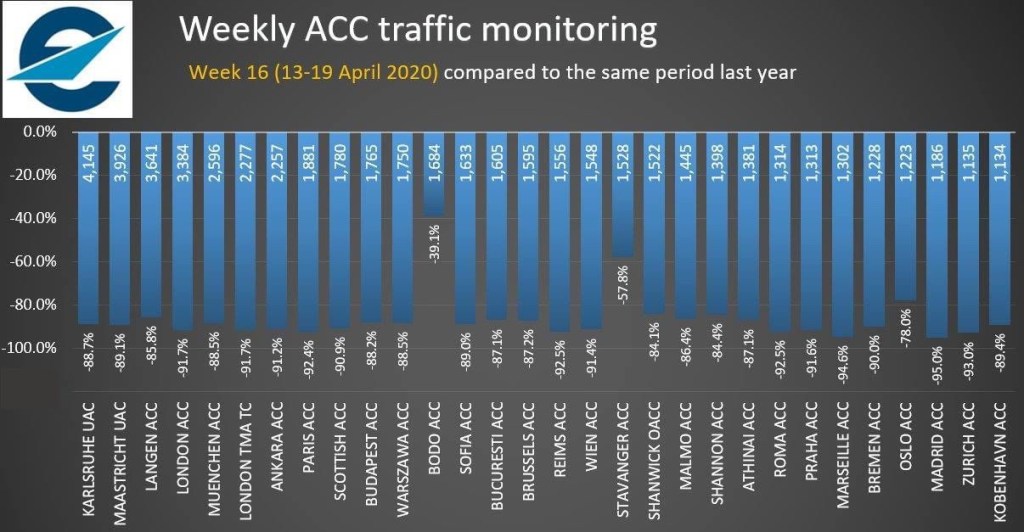 Nella terza i volumi gestiti dai vari enti del traffico europeo delle diverse nazioni. I minori cali si leggono in Norvegia. Il trasporto aereo e’ l’unica via rapida per quella nazione ed e’ assolutamente essenziale anche in questi momenti.