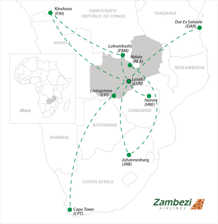 Il vettore è stata un aerolinea privata dello Zambia con servizi nazionali e maggiormente internazionali. I collegamenti erano diretti verso i paesi vicini. Il Sud Africa e la Tanzania furono attivate nel giugno 2009.