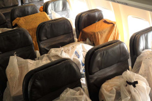 Secondo Anthony Johnson, ingegnere senior dell’Alaska Airlines, i cassonetti sospesi sono progettati per lo stivaggio del bagaglio a mano e sono resistenti. Tuttavia, dobbiamo proteggere i sedili rimuovendo i giubbotti di salvataggio da sotto i sedili e coprendo la pelle con un tessuto protettivo.