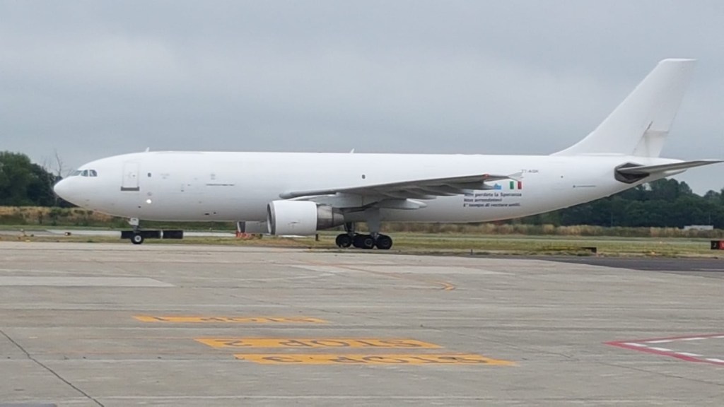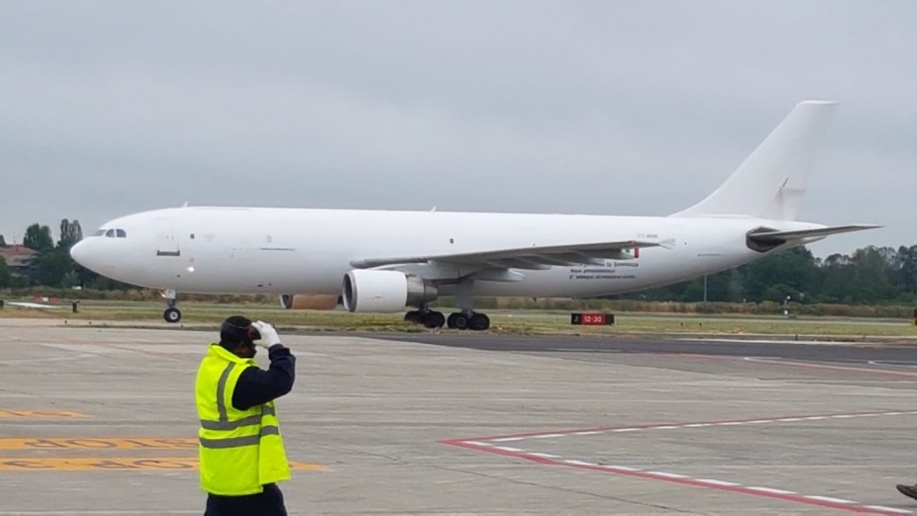 Cosa aveva a bordo l’A300-600R F di stamani?”Questo è’ il primo di una serie di nuovi voli dalla Cina a Bologna per trasportare gli importanti ausili contro il Covid-19”. Ci dice Rossano De Luca, che continua “Il prossimo atterrerà venerdì alle 07.30. Oggi abbiamo trasportato presidi sanitari da Zhengzhou via Alma Aty. A bordo avevamo (mascherine , tute) per 297 mc in poco meno di 30 tons di peso”.