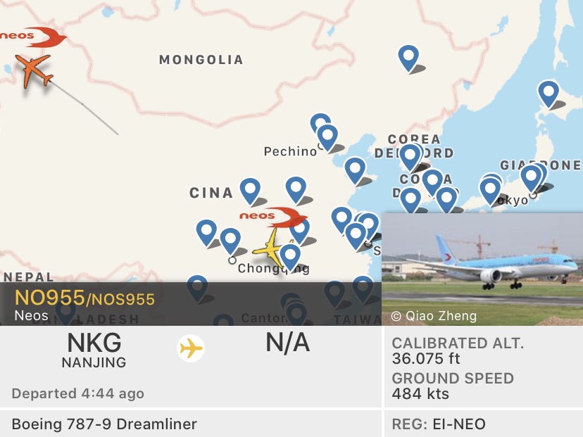 Due voli da Nanjing verso l’Europa, un altro da Pechino verso Bologna da poco atterrato. Neos continua sulla Via della Seta ininterrottamente.