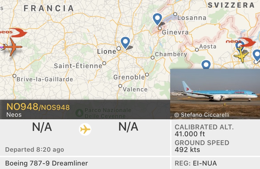 compagnie aeree, rotte Neos : volo rimpatrio da La Romana – Montego Bay Pubblicato da Italiavola il 17 Maggio 2020 Questo B787-9 EI-NUA NO948 sta rientrando da un volo coterminalizzato Milano Malpensa-La Romana-Montego Bay-Milano Malpensa. L’arrivo fra poco più di un ora. Le marche sono EI-NUA. Condividi: Fai clic per condividere su Facebook (Si apre in una nuova finestra) Facebook Fai clic qui per condividere su LinkedIn (Si apre in una nuova finestra) LinkedIn Fai clic qui per condividere su Reddit (Si apre in una nuova finestra) Reddit Fai clic qui per condividere su Pinterest (Si apre in una nuova finestra) Pinterest Fai clic qui per condividere su Tumblr (Si apre in una nuova finestra) Tumblr Fai clic per condividere su X (Si apre in una nuova finestra) X Mi piace Caricamento... Correlati