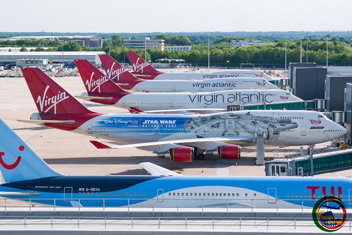 In questi giorni la Virgin Atlantic ha messo a terra, sempre a causa del Covid-19, gli ultimi 5 Boeing 747/400 attualmente in flotta. Tutti quanto sono gemelli, -443, cioè Alitalia come destinazione, anche se non sono mai entrati in flotta con il vettore di bandiera italiano. Quattro di questi sono a Manchester e abbiamo le foto di