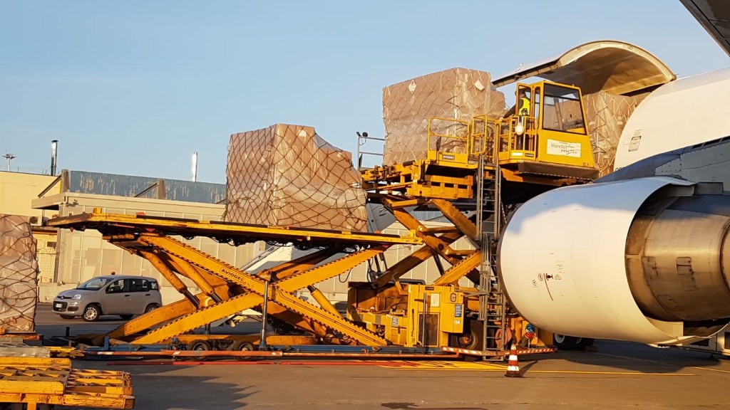 Ieri invece alle 6 e’ atterrato a Bologna proveniente da Zhengzhou via Alma Aty. A bordo oltre 300 metri cubi di dispositivi sanitari di vario tipo per l’emergenza Covid-19.