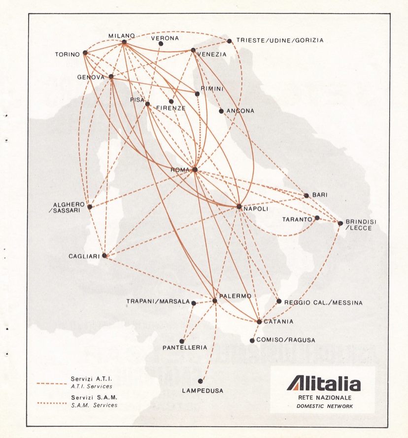 Questo e’ il diagramma della rete di Alitalia-A.T.I.-S.A.M. nell’estate 1971.