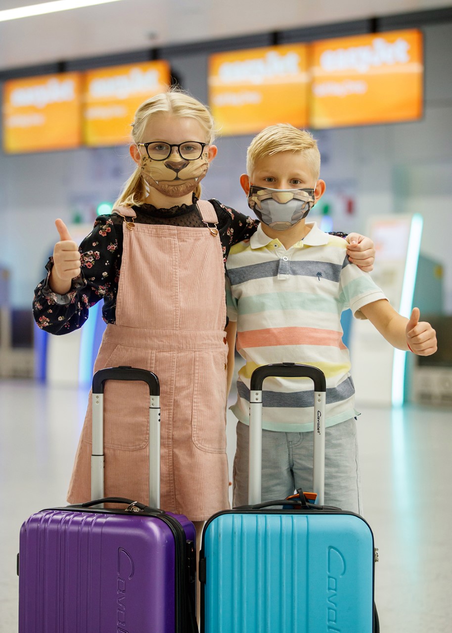 I copri-mascherine a tema “Leone” e “Pilota” saranno messi gratuitamente a disposizione dei bambini che quest’estate voleranno con easyJet dai principali aeroporti europei.