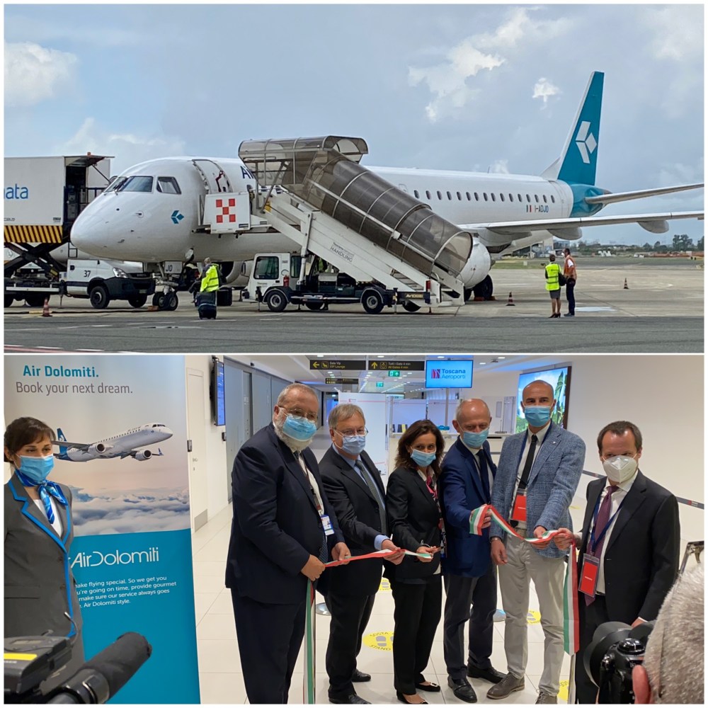 A celebrare l’inaugurazione del volo, il Presidente e l’Amministratore Delegato di Toscana Aeroporti, Marco Carrai e Roberto Naldi, e Paolo Sgaramella, Vice Presidente Commerciale di Air Dolomiti, l’Assessora all’Urbanistica e Turismo del Comune di Firenze Cecilia del Re e l’Assessore allo Sviluppo Economico e al Turismo della Regione Toscana Stefano Ciuoffo.