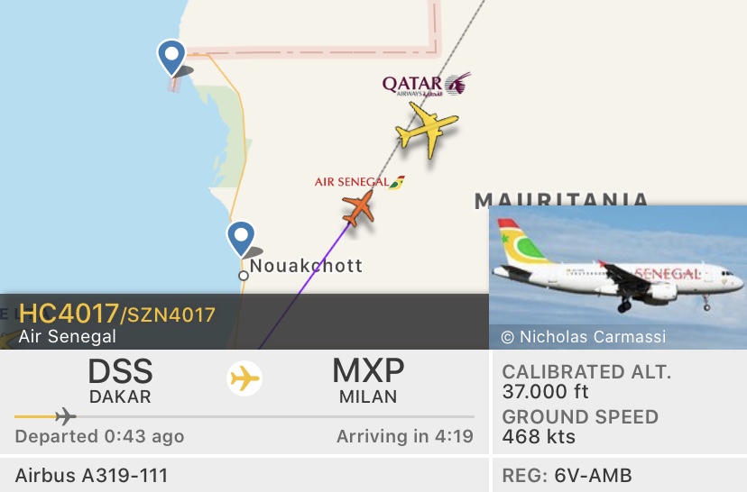 compagnie aeree, rotte Spotter Alert : Air Sénégal verso Malpensa con A319 Pubblicato da Italiavola il 12 giugno 2020 E’ in volo da quasi un oretta il A319-111 6V-AMB Air Sénégal da Dakar DSS verso Milano Malpensa. Martedì era arrivato l’A330-900neo. A bordo cittadini senegalesi di ritorno in Italia. Condividi: Fai clic per condividere su Facebook (Si apre in una nuova finestra) Facebook Fai clic qui per condividere su LinkedIn (Si apre in una nuova finestra) LinkedIn Fai clic qui per condividere su Reddit (Si apre in una nuova finestra) Reddit Fai clic qui per condividere su Pinterest (Si apre in una nuova finestra) Pinterest Fai clic qui per condividere su Tumblr (Si apre in una nuova finestra) Tumblr Fai clic per condividere su X (Si apre in una nuova finestra) X Mi piace Caricamento... Correlati