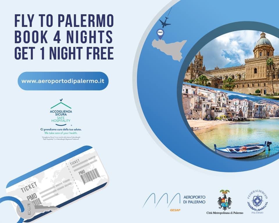 La promozione è stata battezzata “Fly to Palermo, book 4 nights, get 1 night free” (Vola a Palermo, prenota 4 notti, una è gratis) ed è destinata ai passeggeri in arrivo all’aeroporto di Palermo con un volo di qualsiasi compagnia aerea.
