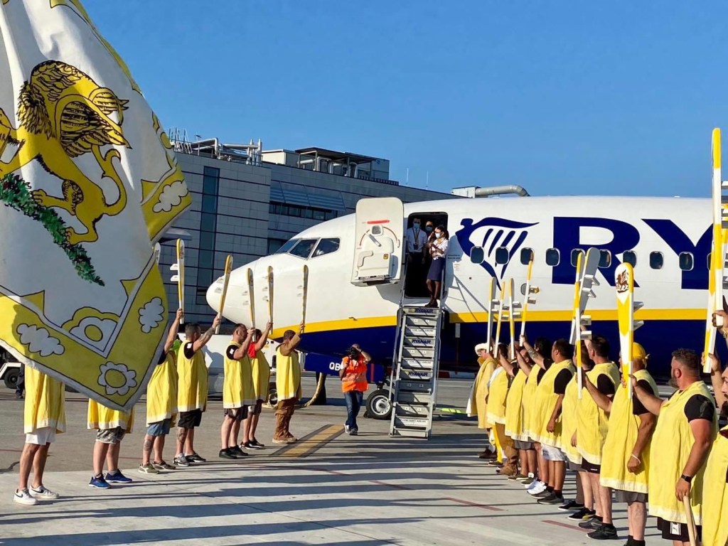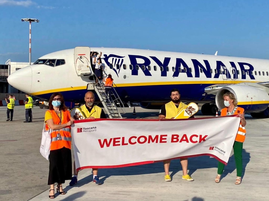 Con un allegorico ritorno e’ stato festeggiato a Pisa con l’arrivo questa sera del volo Ryanair da Catania.