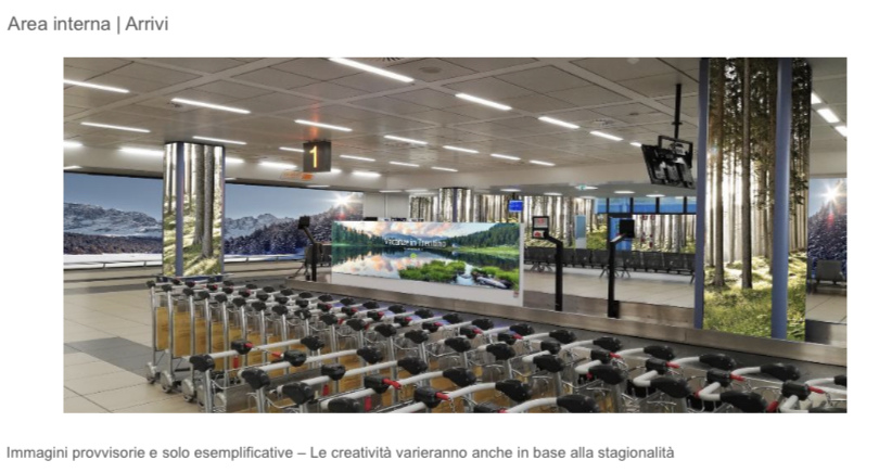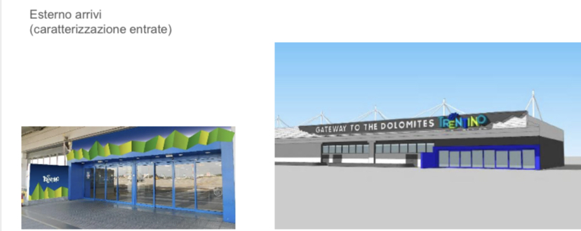A sottolineare il legame tra lo scalo e il territorio trentino, sopra la facciata del lato arrivi del terminal che dà sul piazzale aeromobili, in corrispondenza delle entrate arrivi Schengen ed Extra Schengen, verranno collocate due scritte “Trentino – Gateway to the Dolomites”, ad evidenziare che lo scalo rappresenta una delle principali porte d’accesso verso le nostre montagne, Patrimonio dell’Unesco.