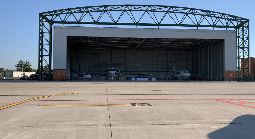- Un hangar di 2000 metri quadri, risultato delle più moderne tecnologie applicate al settore aeronautico, in grado di ricoverare aeromobili delle più svariate dimensioni fino al Boeing 737BBJ, e nel quale si prevede si installeranno diverse compagnie di manutenzione.