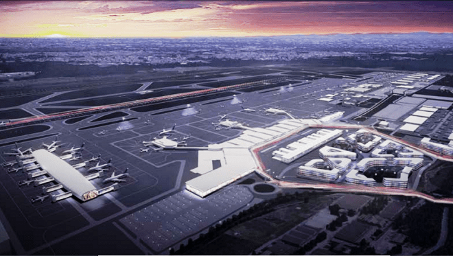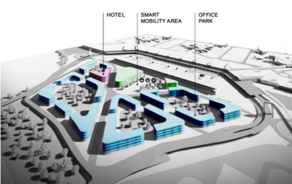 Poi si vede una airport city ora nell’area del parcheggio a raso P3.