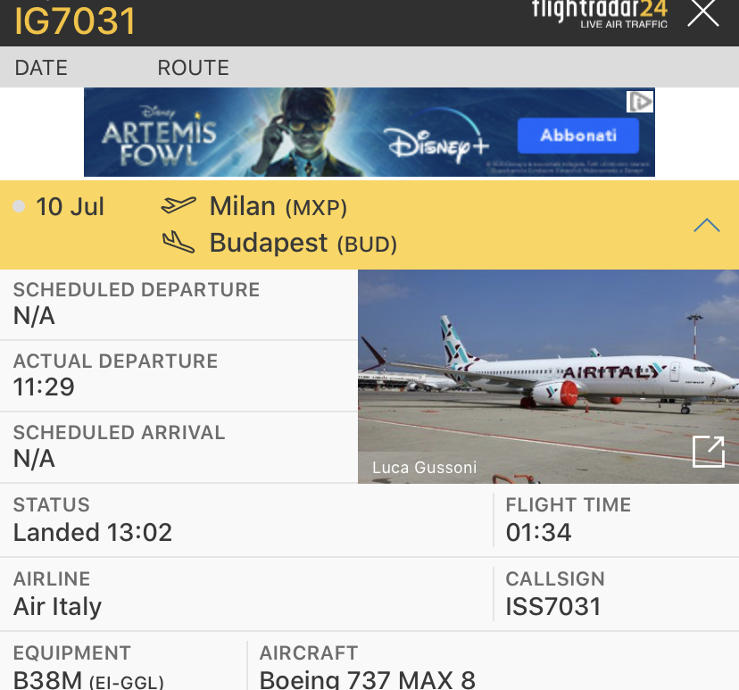 Questa mattina e’ partito da Milano Malpensa per Budapest l’ultimo Boeing 737MAX8 EI-GGL della Air Italy.