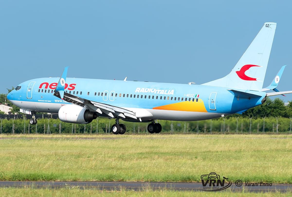 Anche il Boeing 737/86N I-NEOZ della Neos , come si vede ha il nuovo look con Radio Italia.