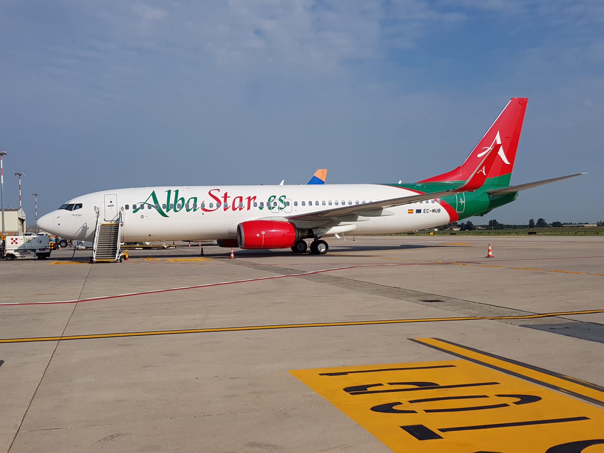 Un Boeing 737/800 EC-MUB della #AlbaStar S. A. ieri pomeriggio e’ arrivato a #Bologna con a bordo il #SSCNapoli.