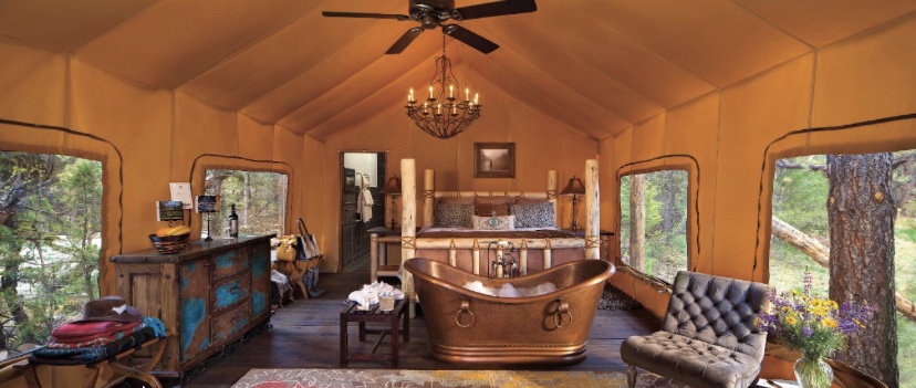 I viaggiatori possono sperimentare la vita dei cowboy nelle pianure del Montana, negli Stati Uniti nord-occidentali, al Resort at Paws Up. Gli ospiti possono prenotare una delle capanne di legno di questa tenuta di ben 37.000 acri, con ranch in attività, ma sono le tende spaziose e appartate i posti più speciali in cui soggiornare. La scelta è tra quelle arroccate sul bordo di una scogliera, con vista sul turbinoso fiume Blackfoot (che per dieci miglia scorre attraverso la proprietà) ed Elk Creek, circondato da alberi imponenti. Gli interni sono in stile western-chic, con giroletti in legno, stampe vivaci e vasche da bagno in rame, che donano quel tocco di lusso anche alla vacanza in campeggio. Nella sezione privata del ranch, sono presenti delle tende di glamping con vista su prati e montagne. Il luogo ospita inoltre numerosi workshop sulla natura selvaggia che spaziano da lezioni di pittura e sessioni di fotografia del cielo, a pesca con la mosca, escursioni e passeggiate a cavallo. Da qui è possibile esplorare la regione del fiume Blackfoot, passeggiando tra le foreste di conifere e lungo pianure vuote, ammirando gli splendidi paesaggi della natura selvaggia del Montana. pawsup.com