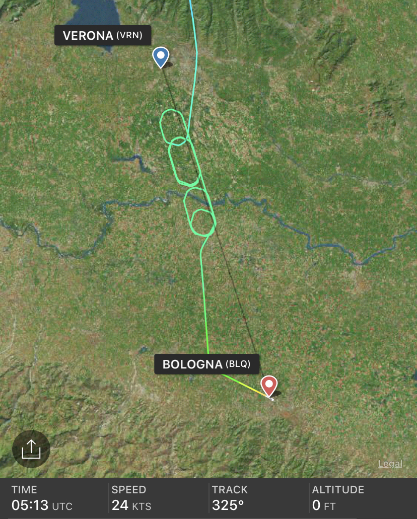 Nella foto il diagramma di volo del volo Ryanair per Verona poi atterrato a Bologna