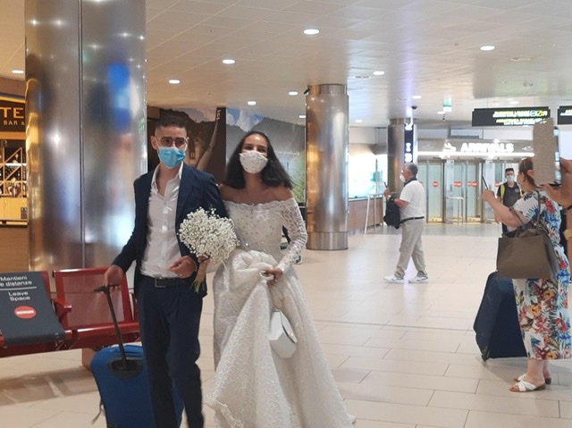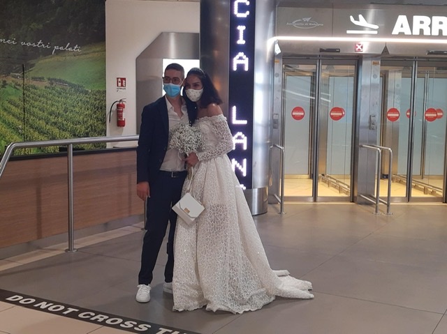 Il Covid-19 gli aveva bloccato il matrimonio. Oggi, Ramy e Meriem all’aeroporto Marconi si sono ritrovati per sposarsi.