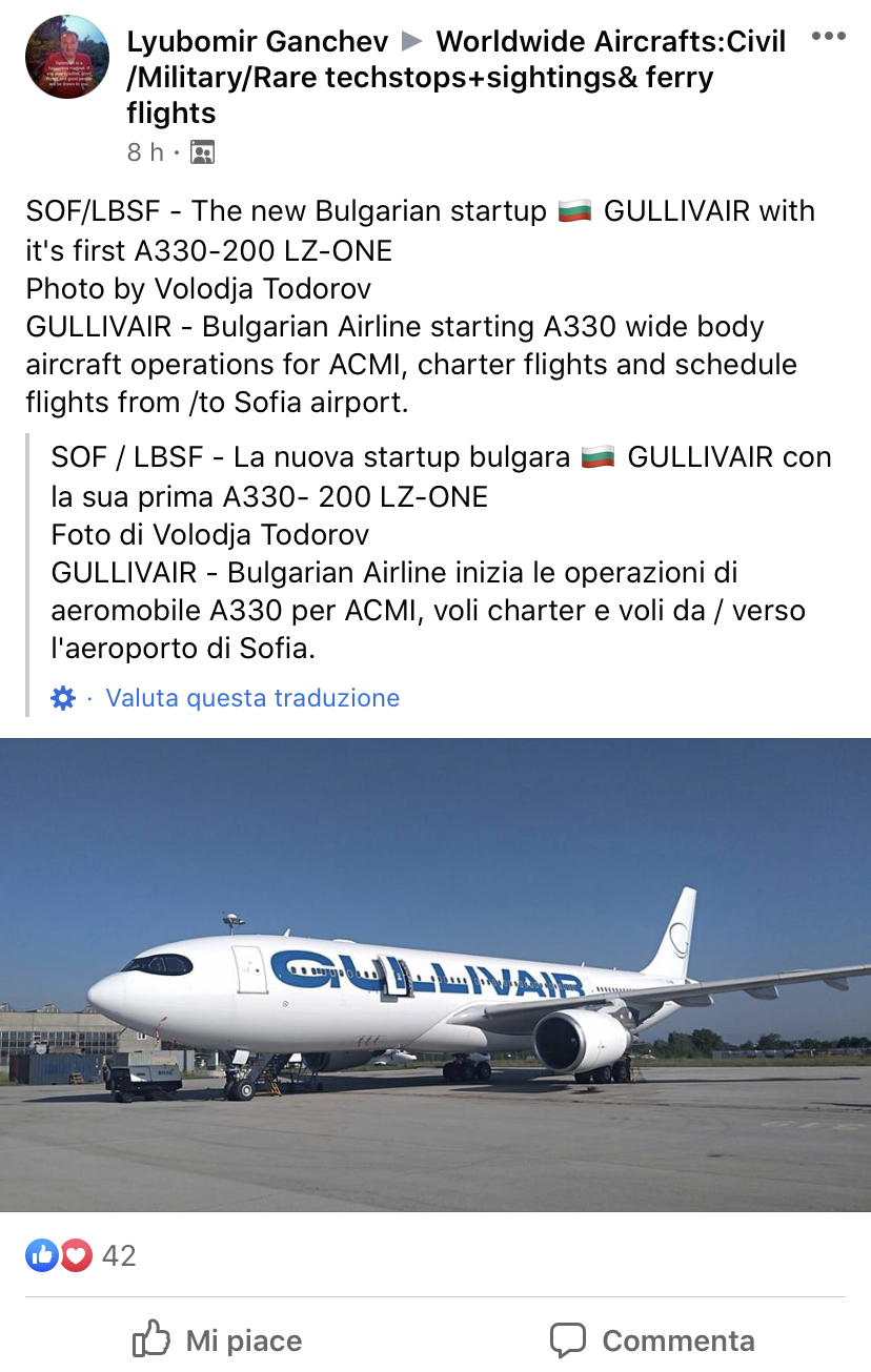 Nuova aerolinea in Bulgaria dal nome GullivAir. Ha un A330-200 LZ-ONE.