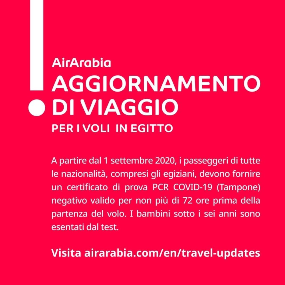 compagnie aeree, rotte Test Covid-19 per tutti richiesto a chi entra in Egitto dal 1 settembre Pubblicato da Italiavola il 28 agosto 2020 Dal 1 settembre per entrare in Egitto servirà’ un certificato Covid-19 negativo. Il test dovrà essere stato fatto ed essere negativo non più di 72 ore prima della partenza del volo. Esenti i bambini sotto i sei anni. Condividi: Fai clic per condividere su Facebook (Si apre in una nuova finestra) Facebook Fai clic qui per condividere su LinkedIn (Si apre in una nuova finestra) LinkedIn Fai clic qui per condividere su Reddit (Si apre in una nuova finestra) Reddit Fai clic qui per condividere su Pinterest (Si apre in una nuova finestra) Pinterest Fai clic qui per condividere su Tumblr (Si apre in una nuova finestra) Tumblr Fai clic per condividere su X (Si apre in una nuova finestra) X Mi piace Caricamento... Correlati