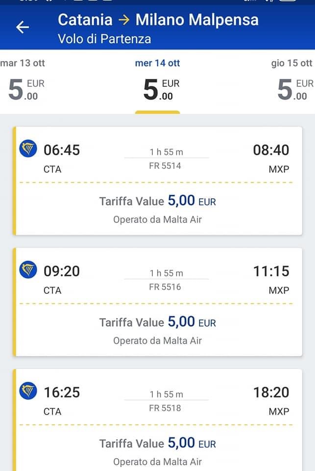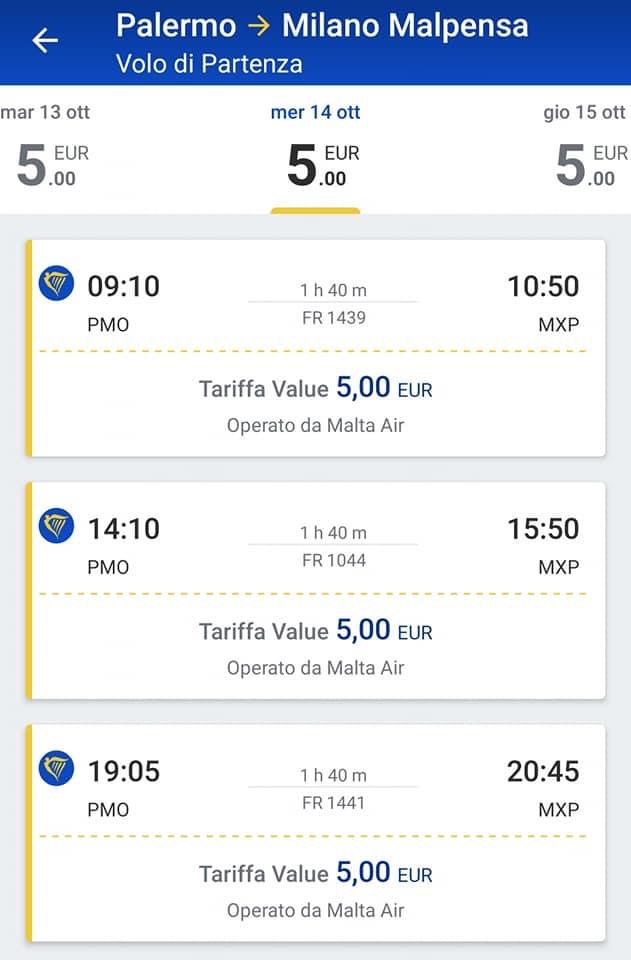 #Ryanair da stamani offre le #rotte da #Milano #Malpensa per #Palermo e #Catania a soli 5€ sola #andata con #tasse comprese.