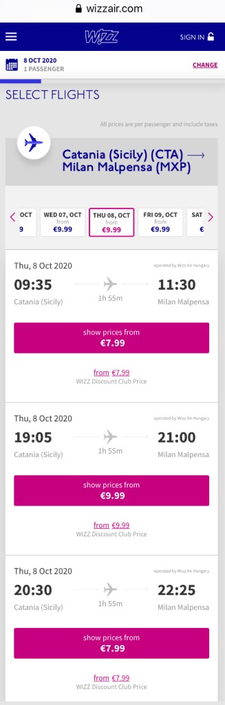 Un primo effetto dell’arrivo di Wizz a Catania. Da qualche minuto e’ in vendita il terzo volo al giorno per Milano Malpensa.