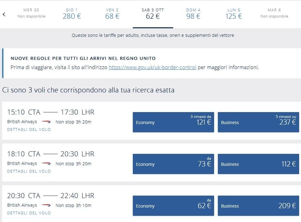 In ottobre ci saranno fino a 3 rotazioni il sabato e domenica tra Catania e Londra Heathrow. Due altri voli aggiuntivi il mercoledì e venerdì. In totale saranno undici le frequenze settimanali.
