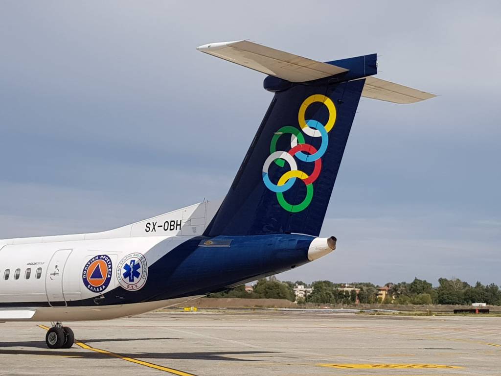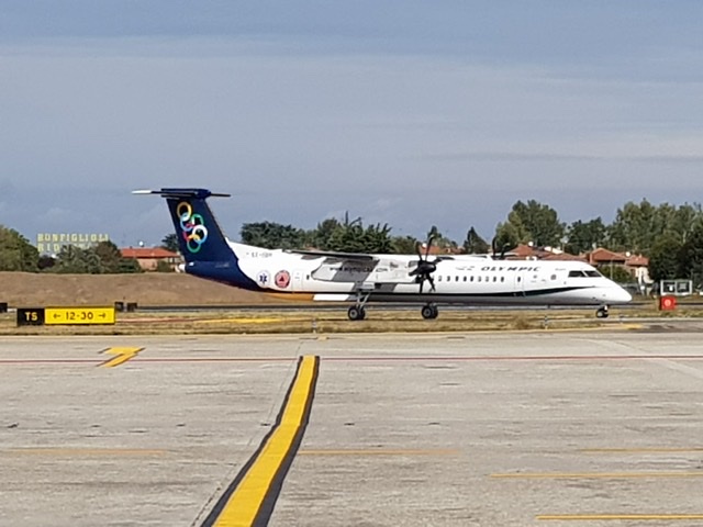 Questo DHC8Q400 e’ giunto oggi a Bologna proveniente da Salonicco per un volo ospedale con passeggeri greci a bordo. L’operazione era già prevista da giorni e più volte rimandata.