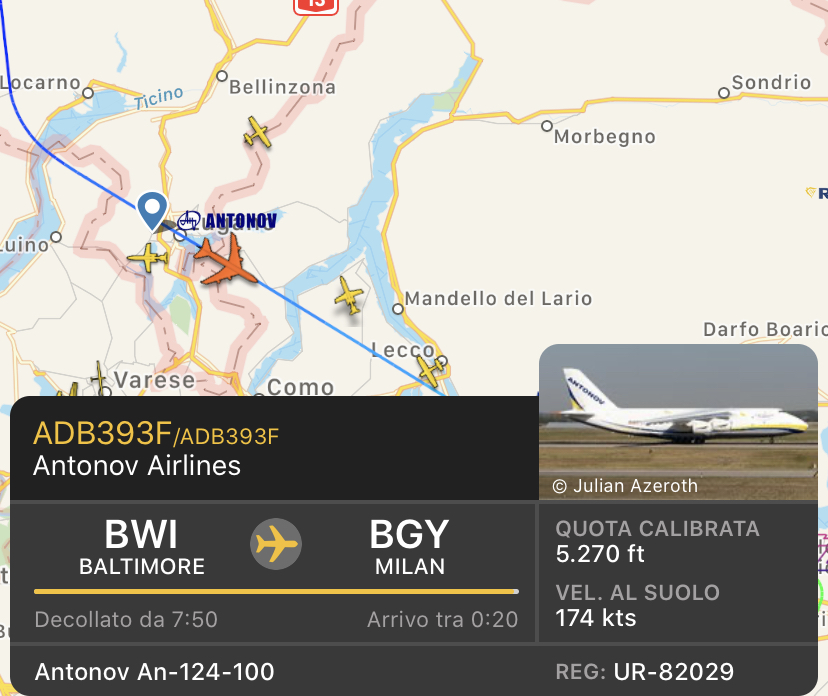Senza categoria Bergamo : un An124 da Baltimora Pubblicato da Italiavola il 30 settembre 2020 E’ arrivato meno di un ora a fa a Bergamo un An124-100M-150 della Antonov Design Bureau UR-82029 proveniente ferry da Baltimora, USA. Condividi: Fai clic per condividere su Facebook (Si apre in una nuova finestra) Facebook Fai clic qui per condividere su LinkedIn (Si apre in una nuova finestra) LinkedIn Fai clic qui per condividere su Reddit (Si apre in una nuova finestra) Reddit Fai clic qui per condividere su Pinterest (Si apre in una nuova finestra) Pinterest Fai clic qui per condividere su Tumblr (Si apre in una nuova finestra) Tumblr Fai clic per condividere su X (Si apre in una nuova finestra) X Mi piace Caricamento... Correlati